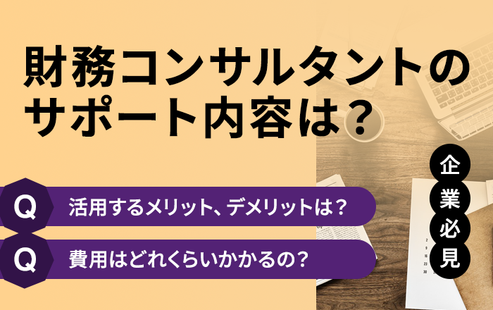 本記事では、財務コンサルタントの役割を解説します。財務コンサルタントを活用するメリット、デメリットや費用相場にも触れるので、コンサルタントの活用を検討中の方はぜひご参考ください。
