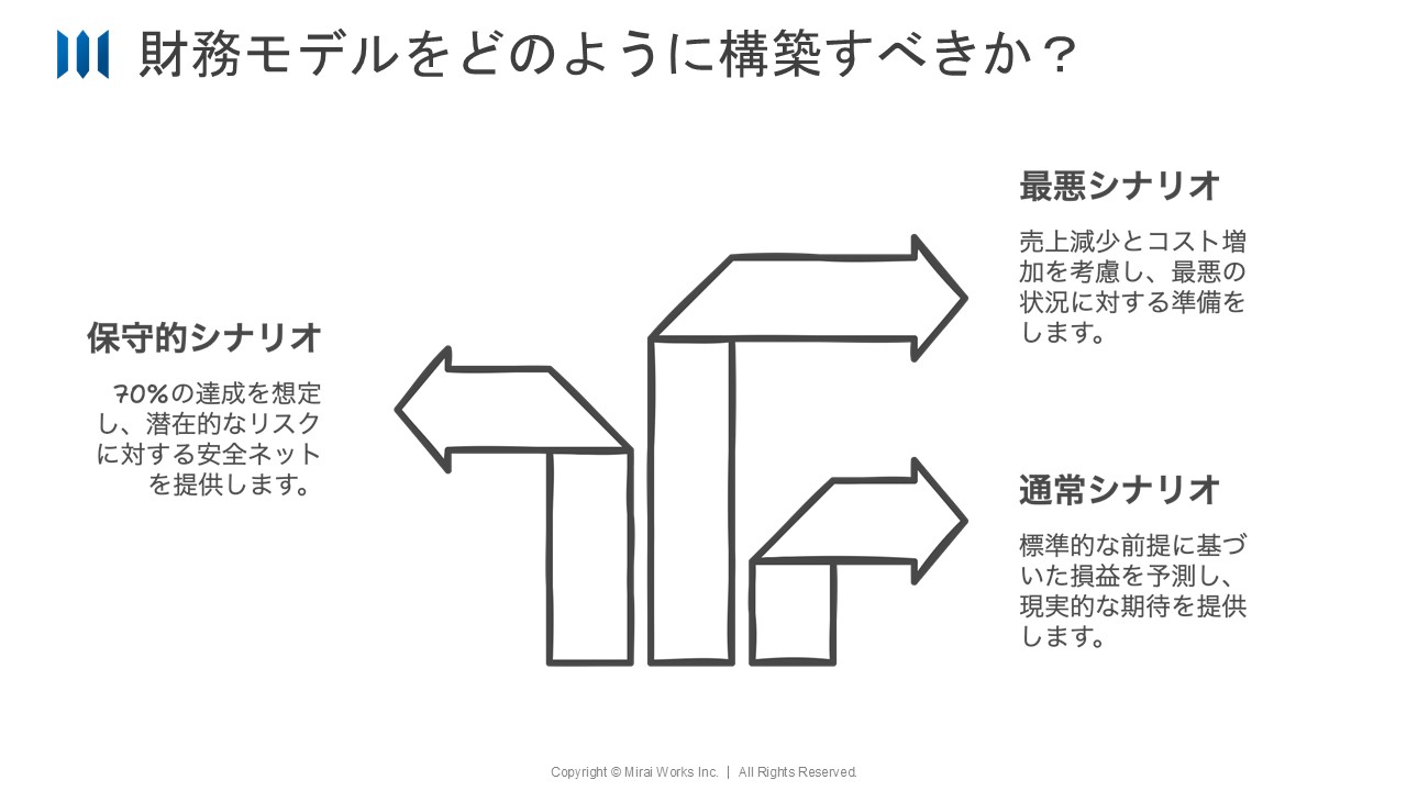 - 最悪シナリオ(売上半減、コスト上振れでも赤字最小限)