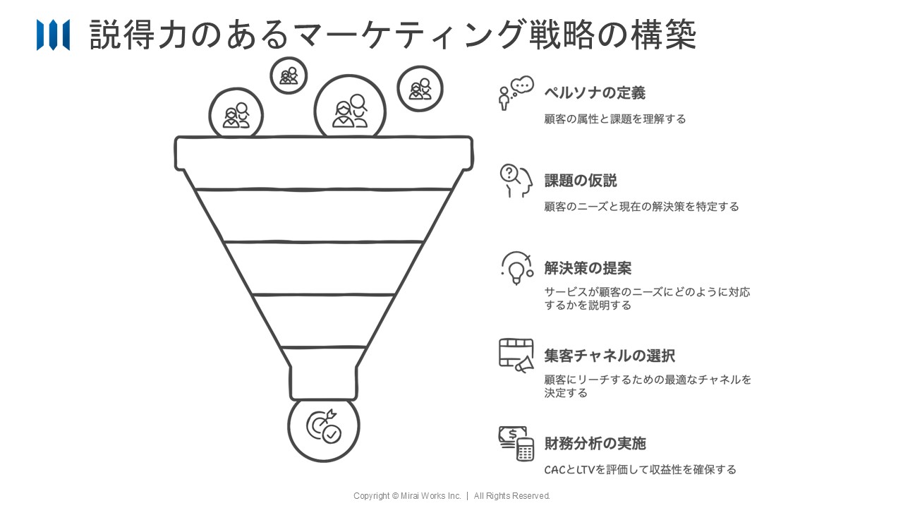 説得力のあるマーケティングパートの構成はこうだ: