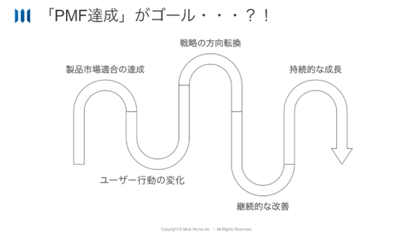 従来、プロダクト・マーケット・フィット(PMF)の達成は、あたかも事業成長の最終目標地点であるかのように捉えられてきました。しかし、実際の事業展開においては、PMF達成は終わりではなく、むしろ始まりに過ぎないという認識が重要です。