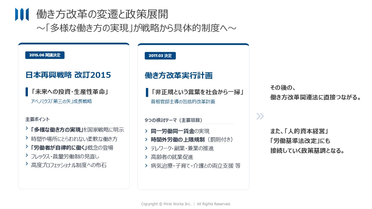 2016〜2018年:働き方改革実行計画から働き方改革関連法へ
