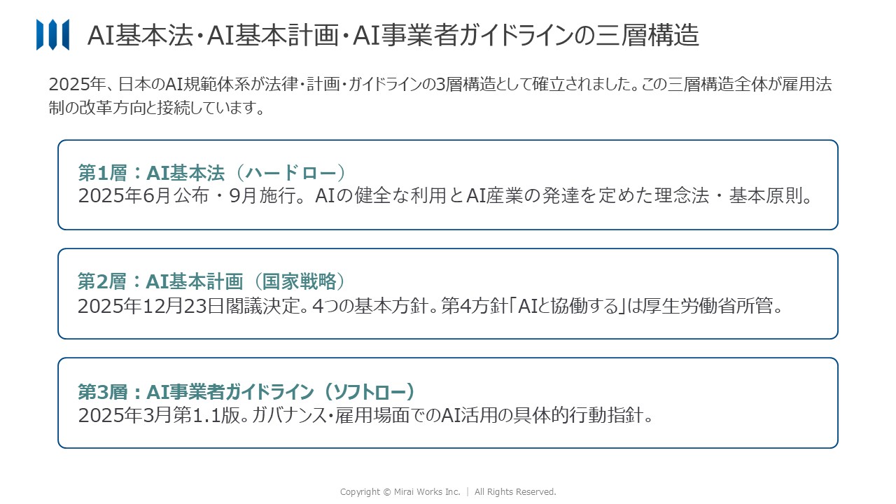 - 労働基準法改正・AI政策・人的資本可視化指針改訂の3つが、なぜ今同時に動いているのか