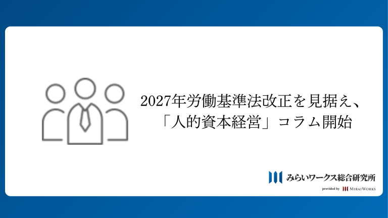 みらいワークス総合研究所は、2025年9月から、2027年労働基準法(労基法)改正を見据え「人的資本経営」をテーマとした全6回の連載コラムを開始いたします。