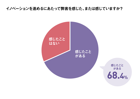 「感じたことがある」と答えた割合が68.4%で、「感じたことはない」を上回りました。イノベーションを推進した経験のある人の約7割が、何かしらの弊害を感じていたことが分かります。