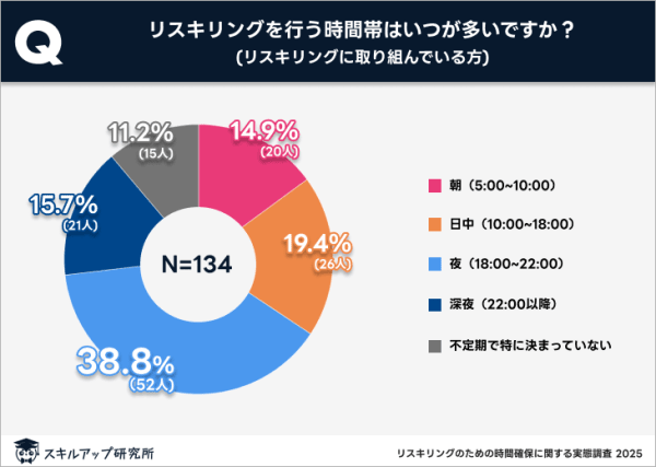 リスキリングに取り組んでいる人に、取り組む時間帯を聞いた結果が図3です。