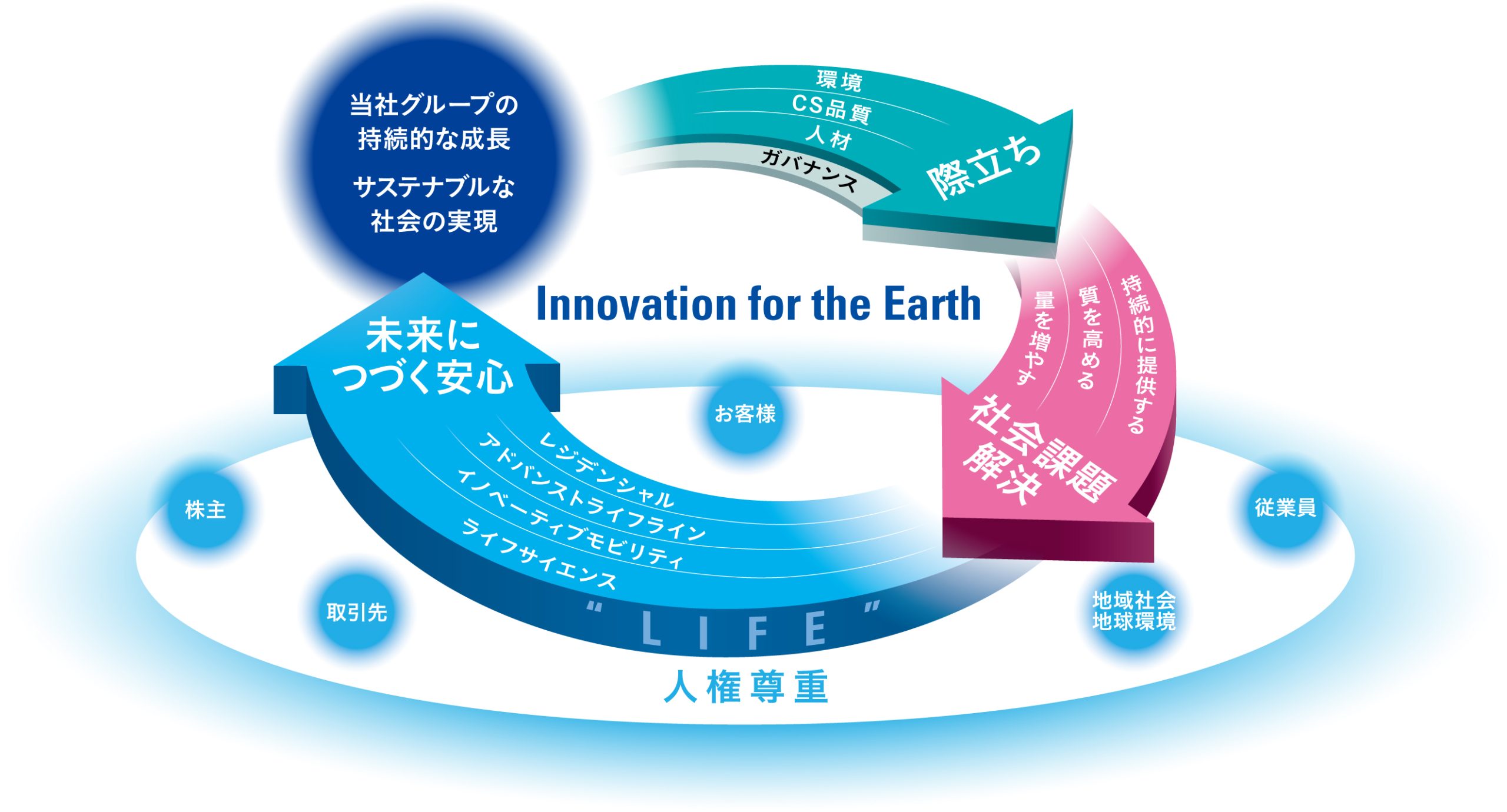 積水化学グループはESG経営を打ち出し、「サステナブルな社会の実現」と「当社グループの持続的な成長」の実現を目指しています。そのための手段として、「際立ち」、「社会課題解決」、「未来につづく安心」の3つをステークホルダーとともに取り組んでいます。「サステナビリティレポート2025」では、これらの具体的な取り組みを解説。環境(Environment)、社会(Social)、ガバナンス(Governance)の分野ごとの課題解決に向けた施策の実施状況などに触れています。