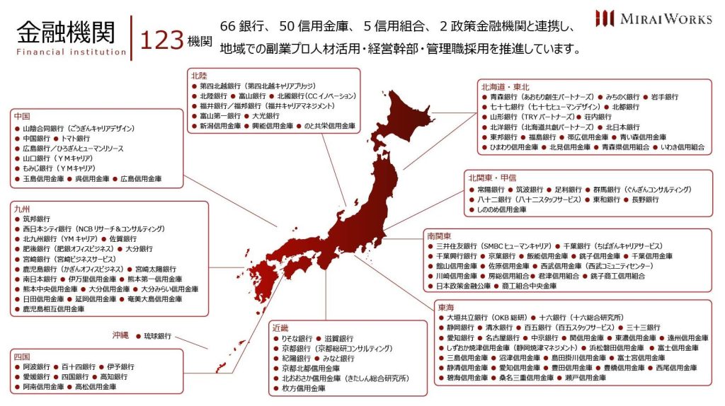 株式会社みらいワークス(本社:東京都港区、代表取締役社長 岡本 祥治、以下「当社」)は、静清信用金庫(本店本部所在地:静岡県静岡市葵区昭和町2番地の1、理事長 鈴木 義行)と人材支援による地域経済の活性化を目的とした業務提携契約を締結したことをお知らせいたします。当社は今回の提携をもって、123の地域金融機関と地方転職・副業人材の活用を推進することとなります。