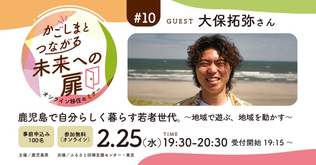 【セミナー告知】2月25日(水)19:30~ 鹿児島で自分らしく暮らす若者世代。~地域で遊ぶ、地域を動かす~|オンライン開催