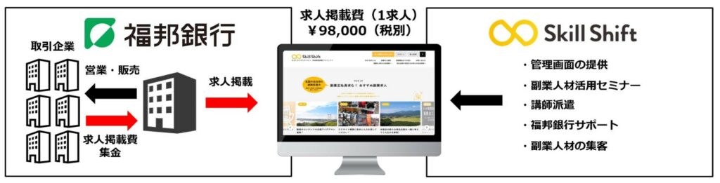 都市部の大企業等で副業解禁の動きが広がりつつある中、福邦銀行は、正社員に加え、都市部で働く優秀な副業人材の知見・ノウハウを活用し、地域活力の創出を目指すと同時に、副業人材を地域に呼び込むことで関係人口(※1)を創出することを目指し、当社の『Skill Shift』を活用いただくことになりました。