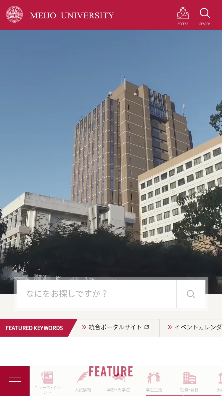 名城大学 https://www.meijo-u.ac.jp/ 愛知県名古屋市にある私立大学。入試情報、教育制度、キャンパスライフ、就職情報。 埋め込み動画 店舗・施設紹介 教育・学校 Created By 株式会社 アクアリング 他の制作物 募集中の求人 掲載修正・取下げ依頼 制作会社情報元 引用元:https://www.meijo-u.ac.jp/ 本ページは、本サイト掲載日時点で公開されているサイトより、画面キャプチャ画像を引用し掲載しています。また各クリエイティブカンパニーの制作実績ページ・SNSより企業情報を紐づけています。掲載取下げ依頼、または修正依頼はコチラよりご連絡ください。