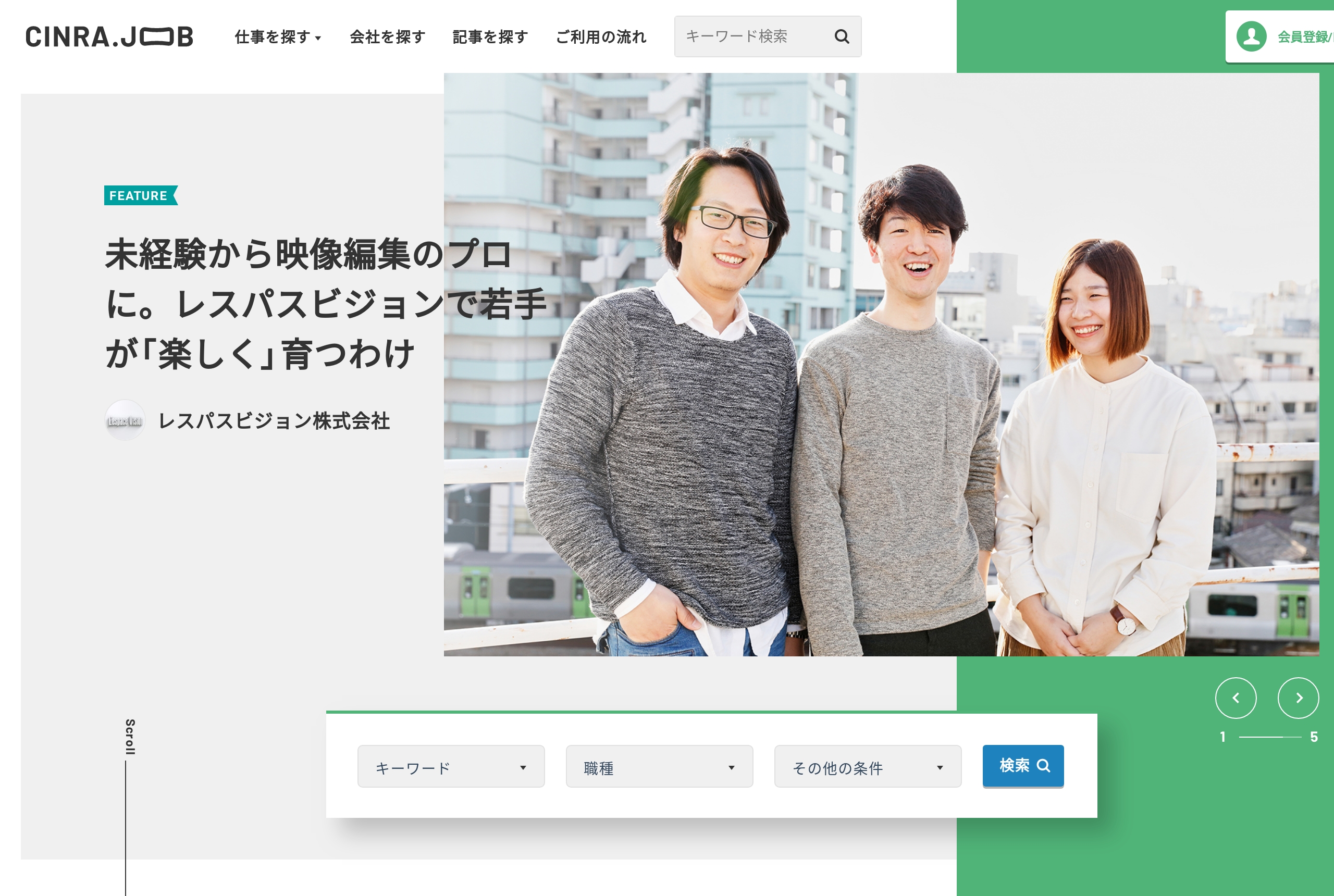 https://job.cinra.net/WEBデザイナー、音楽、出版、編集、映画、テレビ、CMなどクリエイティブ業界の求人情報を集めたサイトCINRA.JOB(シンラジョブ)。