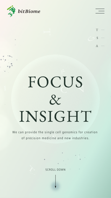 https://www.bitbiome.co.jp/bitBiomeはゲノム解析のゲームチェンジャーです。医療提供者・患者・研究者・エンジニアに、これまでにない正確さと情報量でマイクロバイオームデータを提供し、生命の新たな理解と産業・医療への応用を実現します。