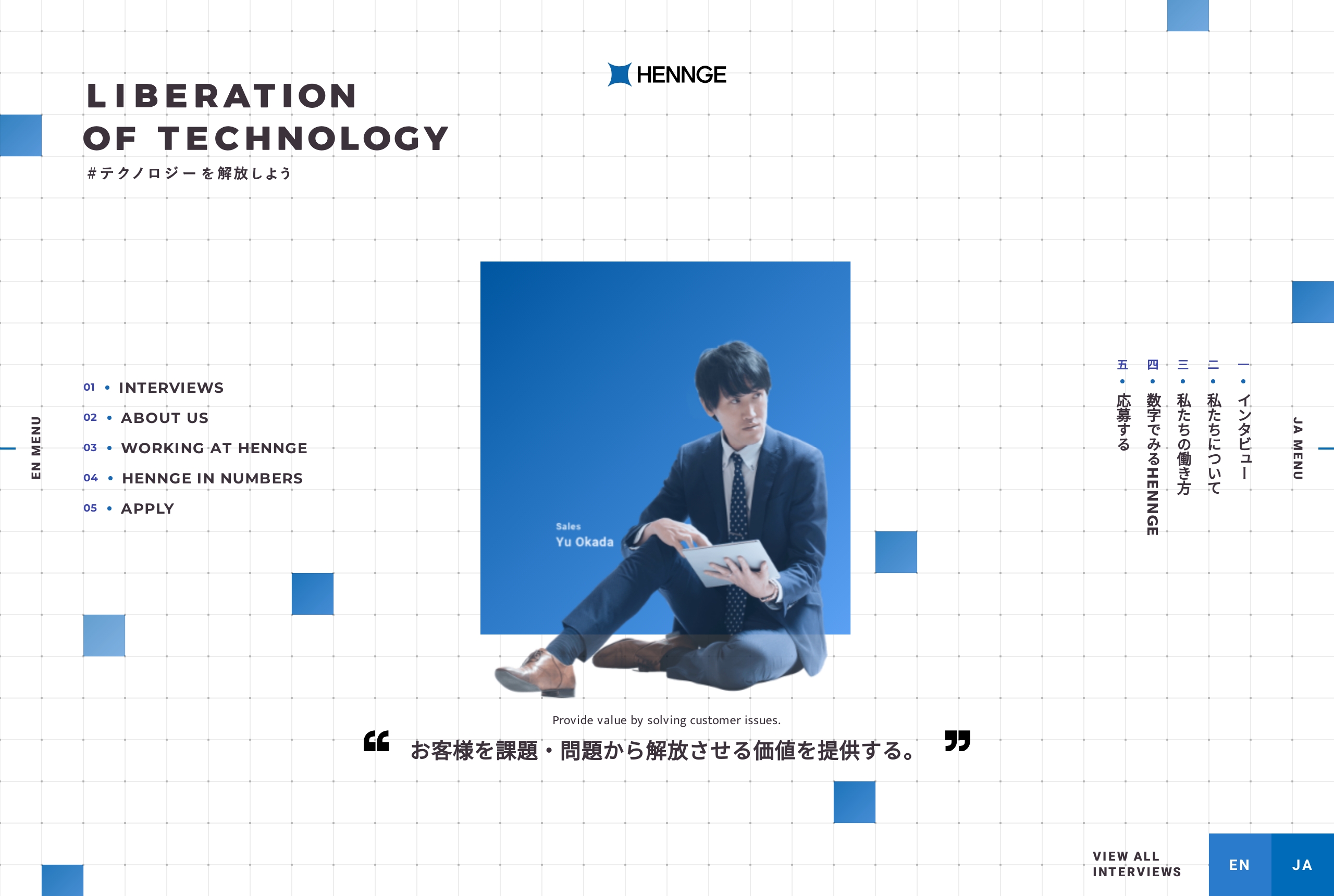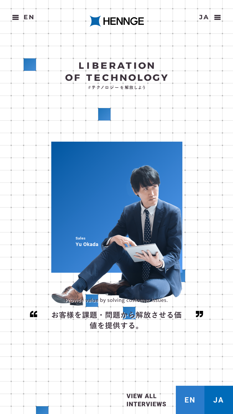 Recruitment site of HENNGE with its company mission as "LIBERATION OF TECHNOLOGY". / 「テクノロジーの解放」を理念に掲げるHENNGEの採用サイトです。