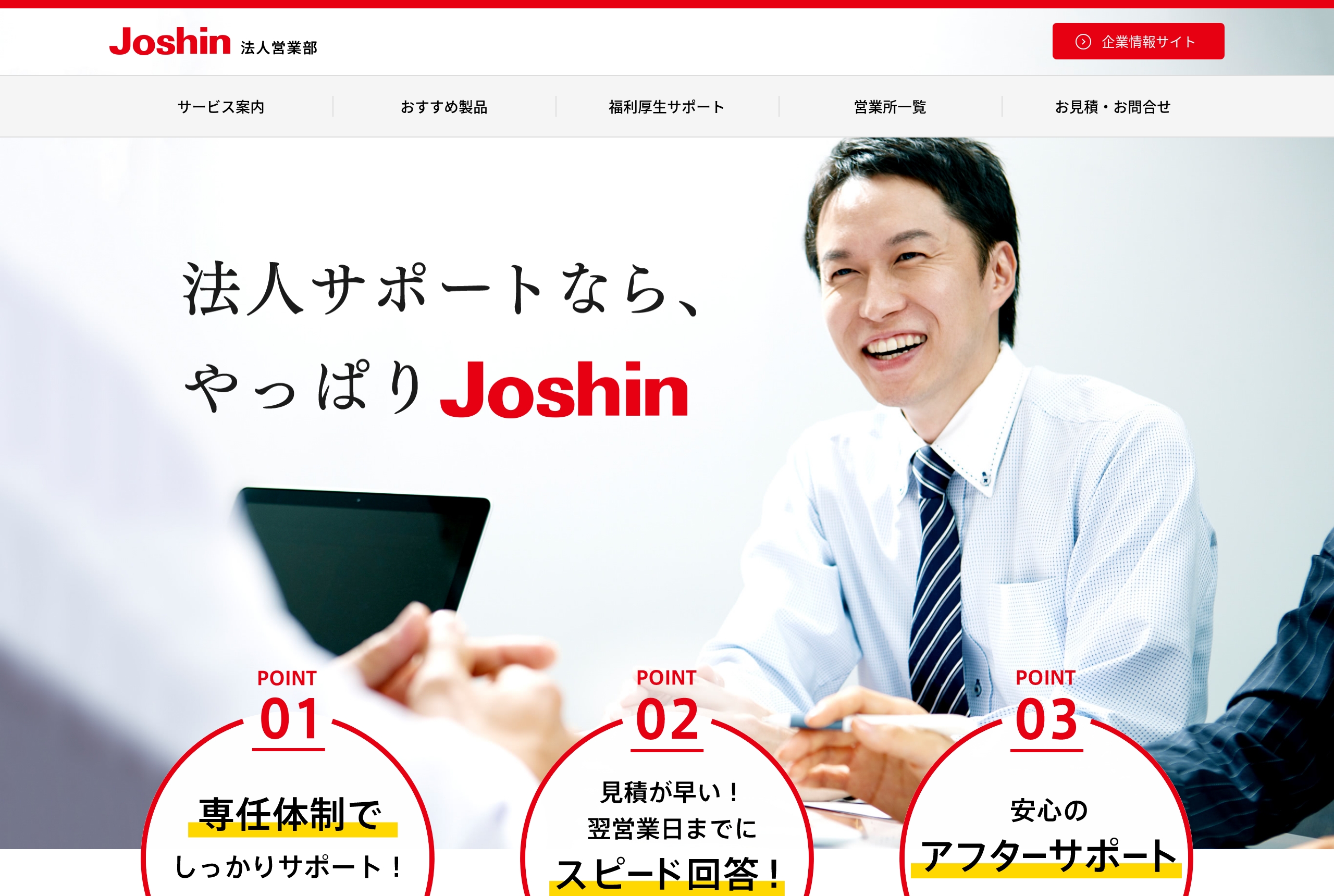 http://www.jpsnet.jp/ジョーシン法人窓口の上新電機(joshin)法人営業部は、オフィス、店舗、社員寮、宿泊施設、福祉介護施設など法人様のニーズにお応えし、ご提案から見積もり、設置、工事手配まで、家電全般をお引き受けします。景品、記念品、福利厚生の充実もお任せください。