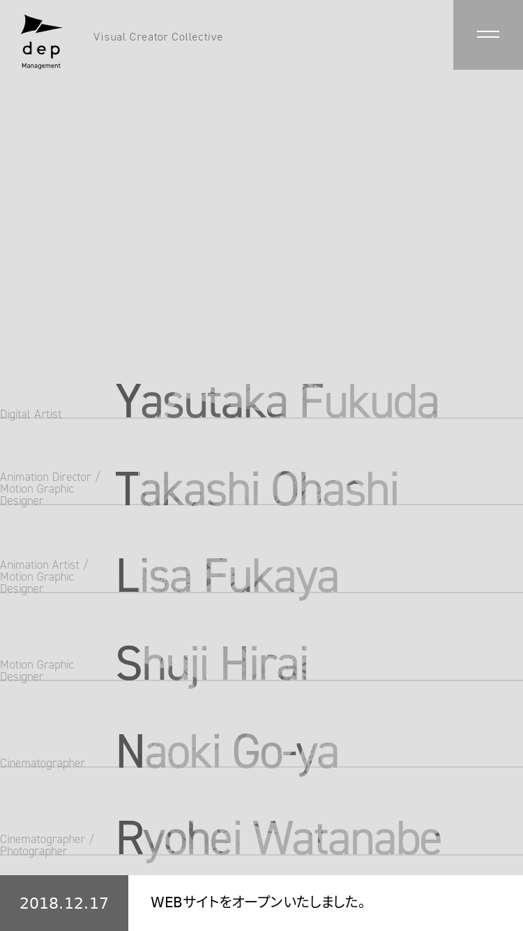 dep MANAGEMENT(デップマネージメント) | クリエイターマネージメント(カメラマン、フォトグラファー、デジタルアーティスト、モーショングラファー)